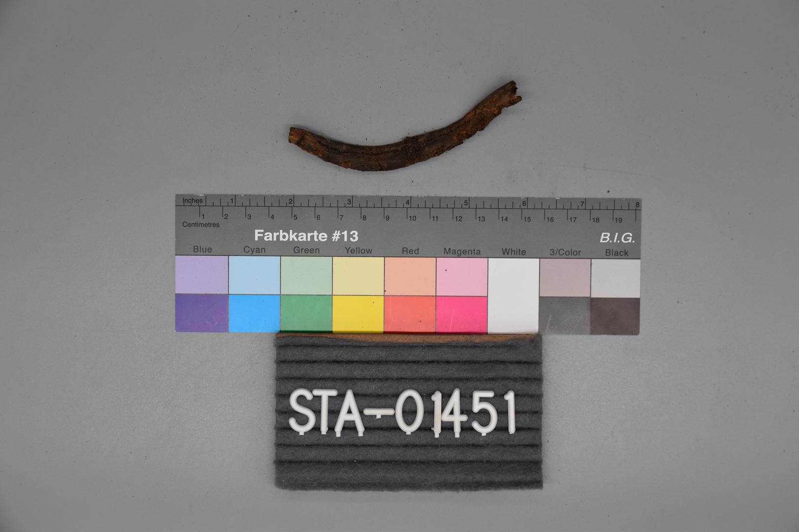 Ein dunkelbrauner Lederriemen. Die Nähte und Löcher sind noch sichtbar. Der Riemen ist gebogen und dünn.