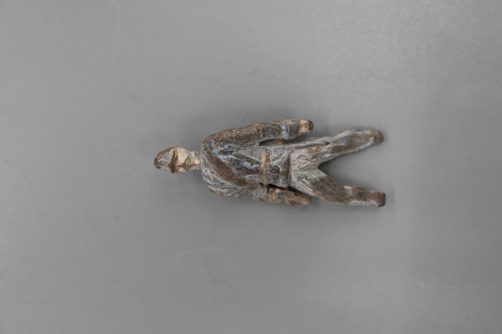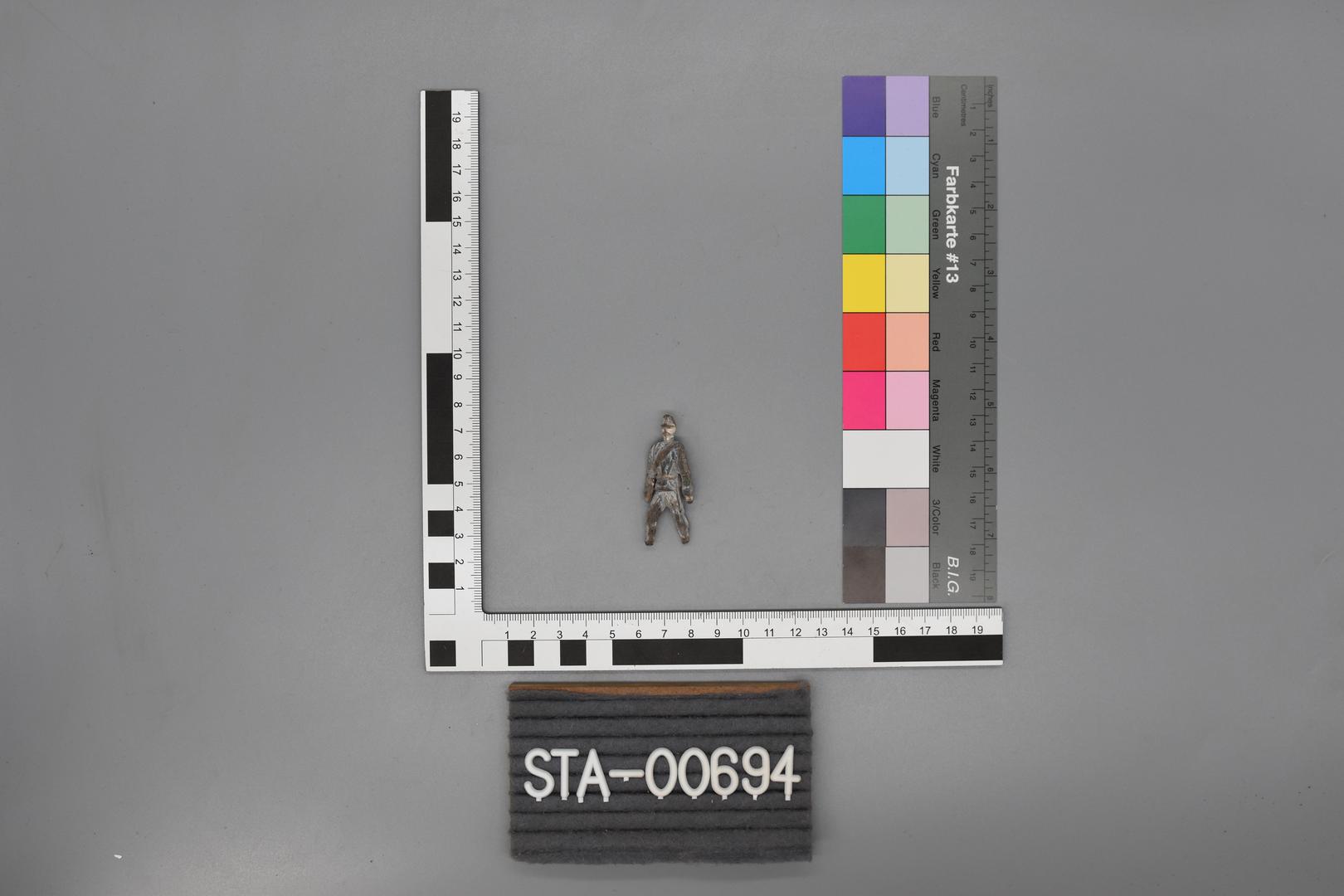 "de": "Es handelt sich um eine Soldatenfigur aus Zinn gearbeitet und bemalt. Die Figur könnte einen ungarischen Infanteristen darstellen."