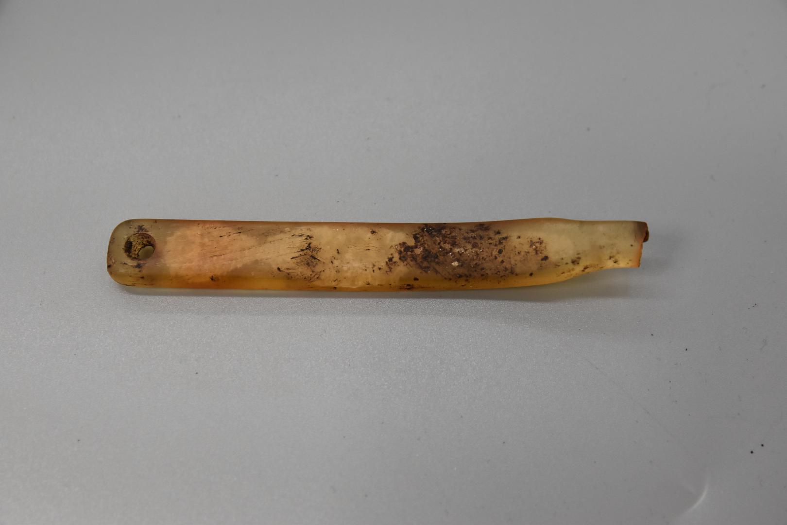 "de": "Der Griff der Zahnbürste ist rechteckig und die Kanten sind abgerundet. Am Ende des Griffes ist eine runde Durchlochung. Der Kopf fehlt."