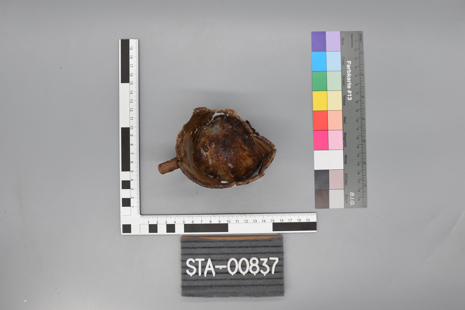 Die Standfläche ist flach. Der Stempel ist schwer lesbar.