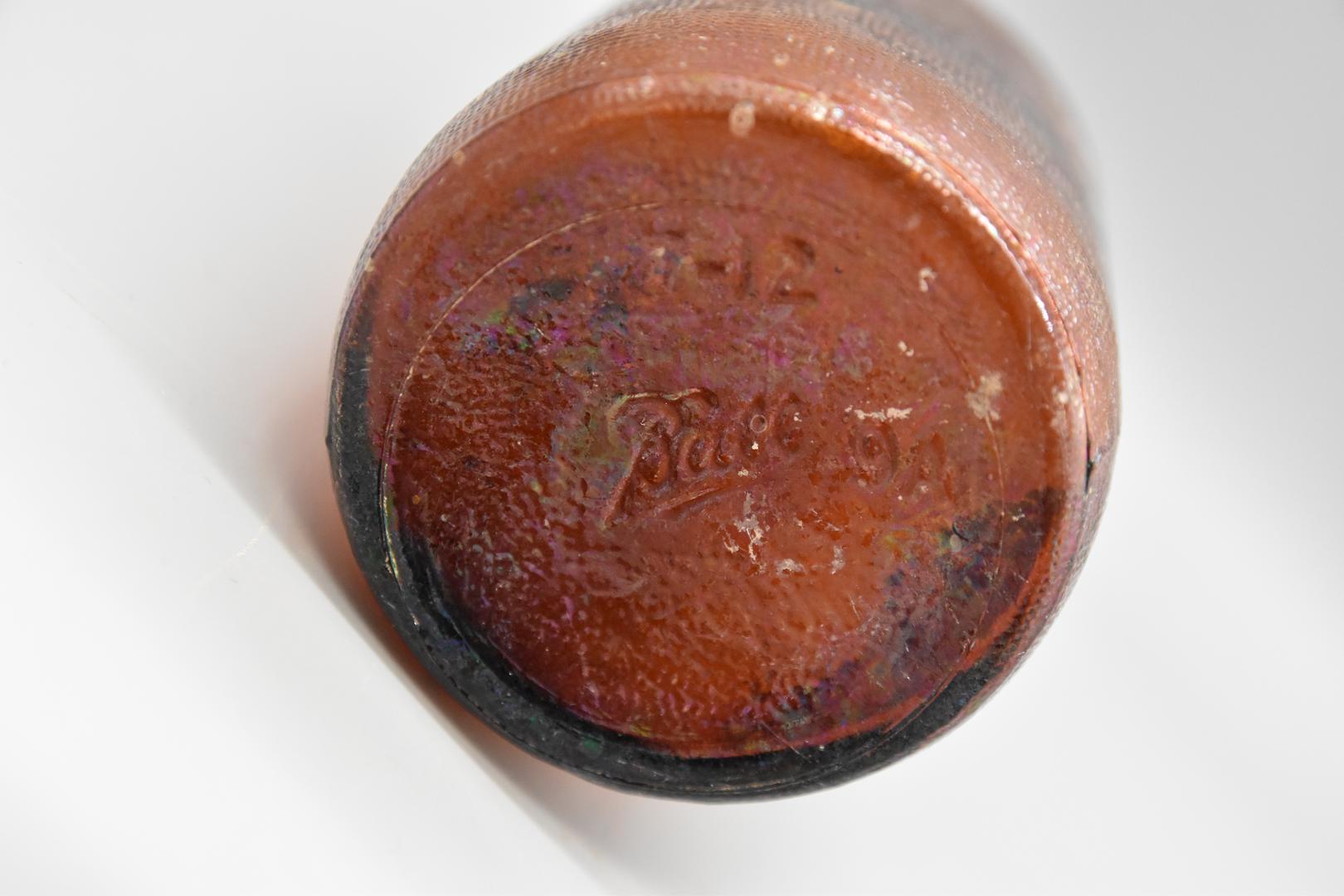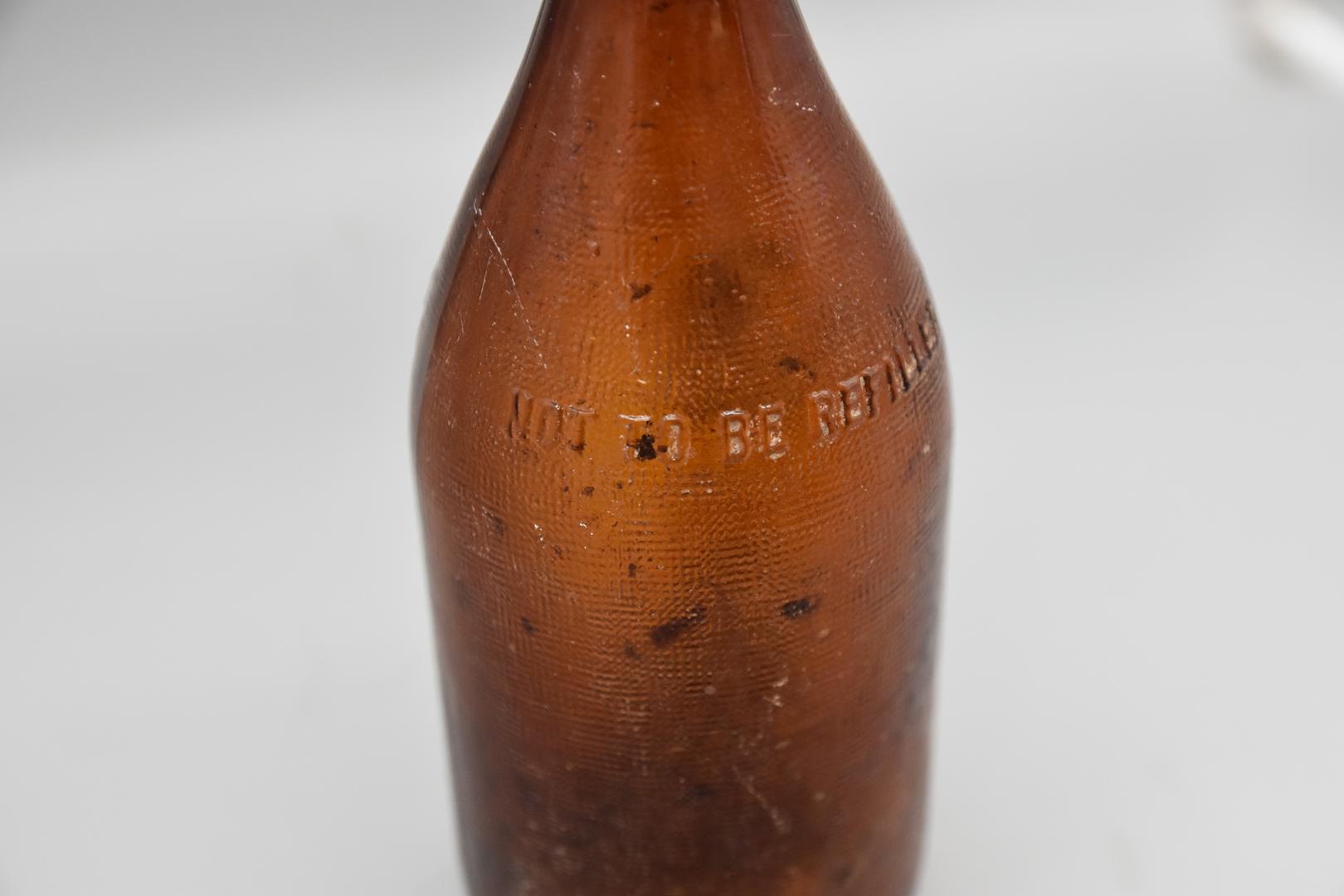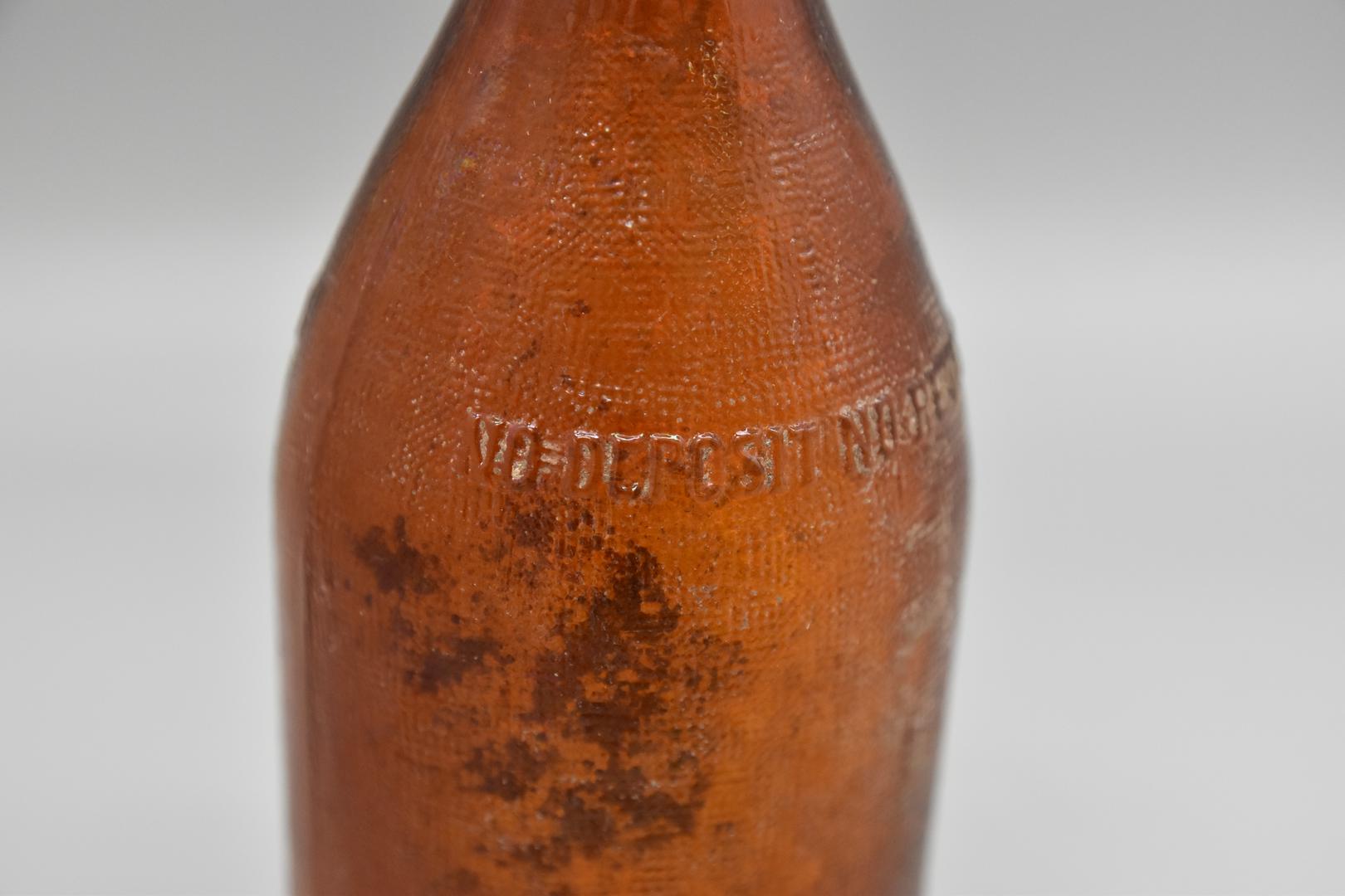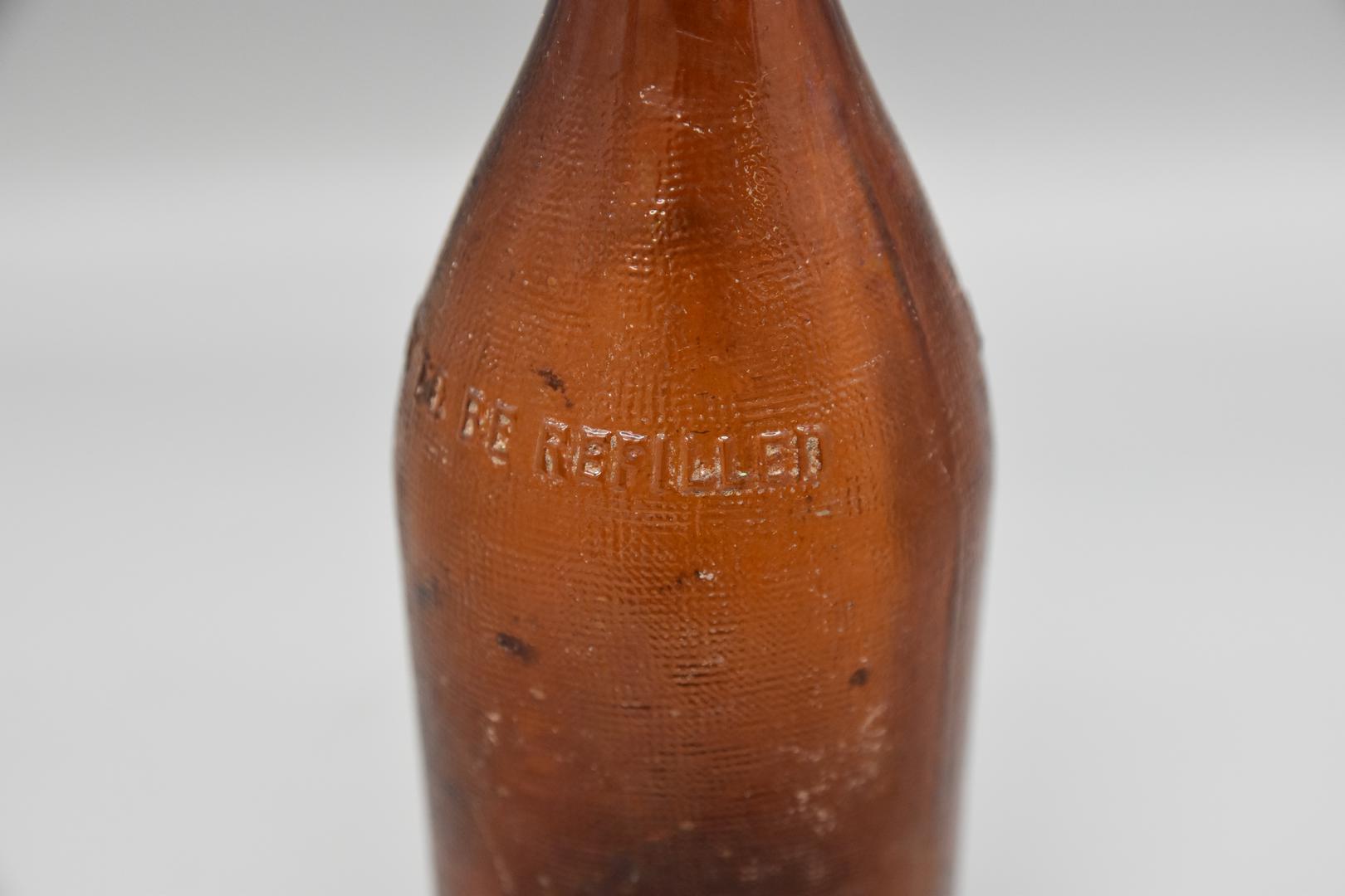 Die braune und zylindrische Flasche hat eine verdickte Mündung, der Hals erweitert sich nach unten und die Schulter ist steil abfallend. In der Bauchzone ist die Flasche genoppt. Der Boden ist leicht konkav.