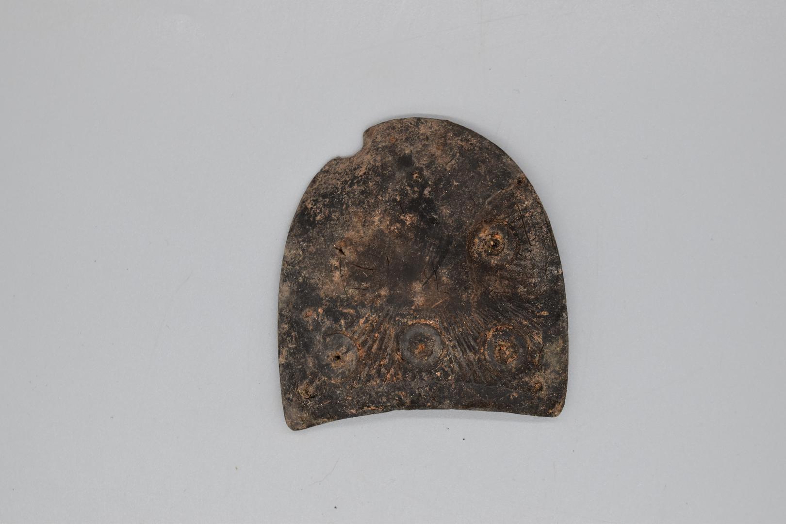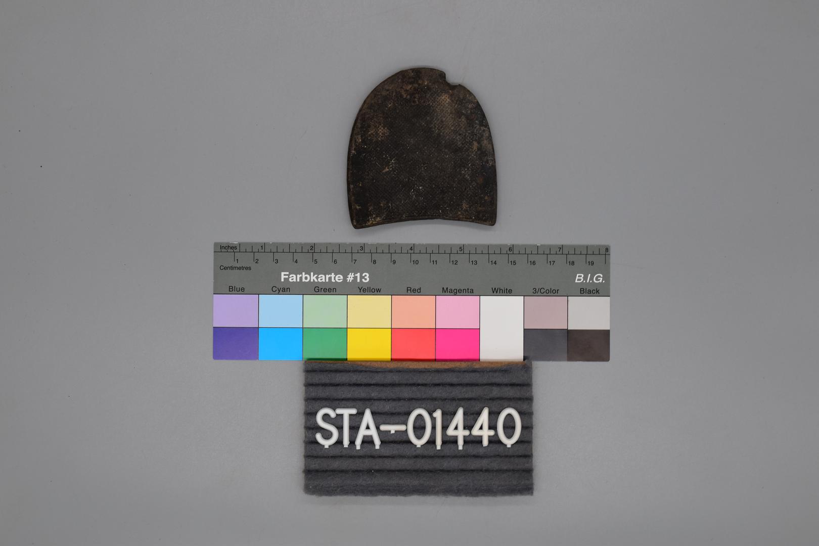 "de": "Die hintere Hälfte ist stark abgenutzt, vermutlich stammt er vom rechten Schuh."