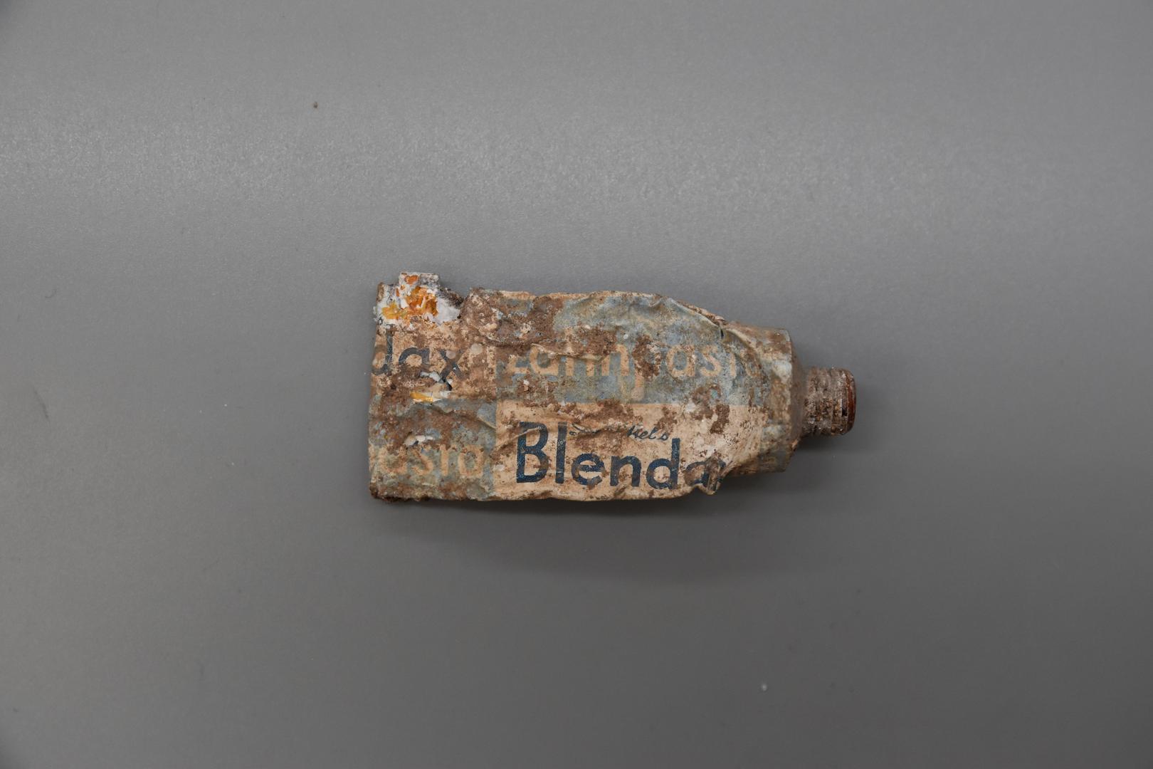 "de": "Kennzeichnung: \"Blendax\", \"R. Schneider & Co. Mainz\", \"Dr. Hittel's Blendax\""