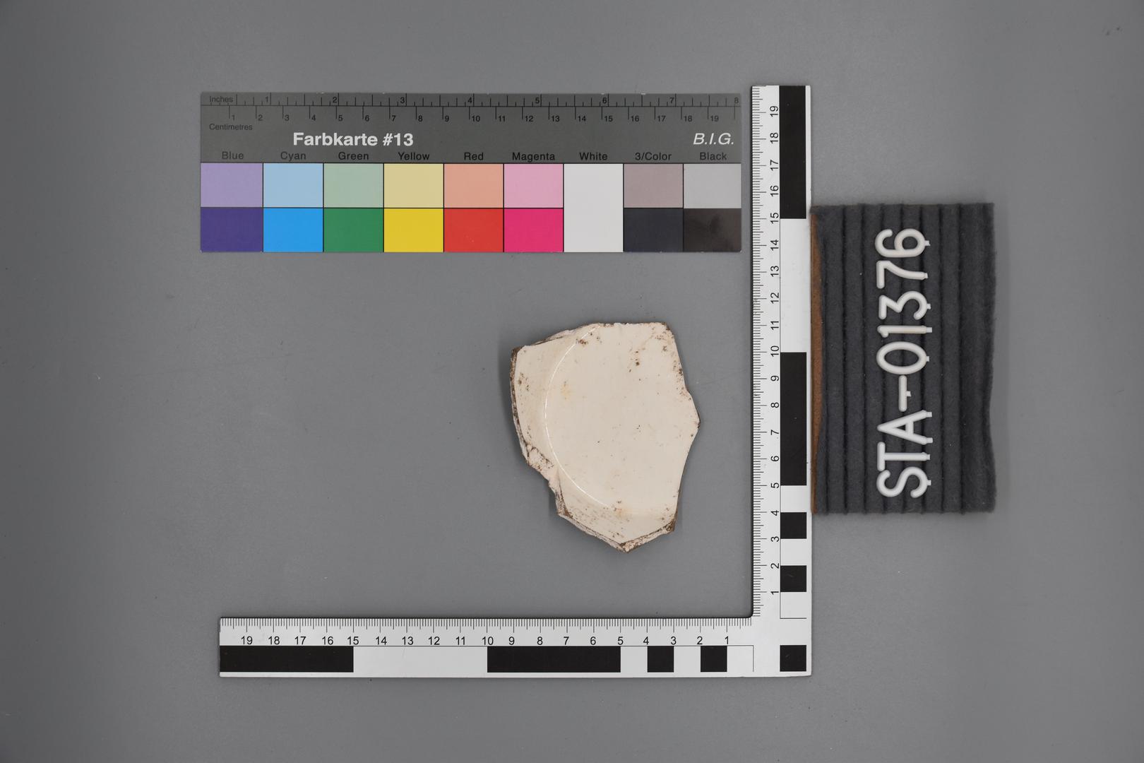"de": "Das Bodenfragment der cremefarbenen Steingutschale besitzt einen Standring. Die Glasur ist gesprungen. Es handelt sich um Ostmark-Keramik."