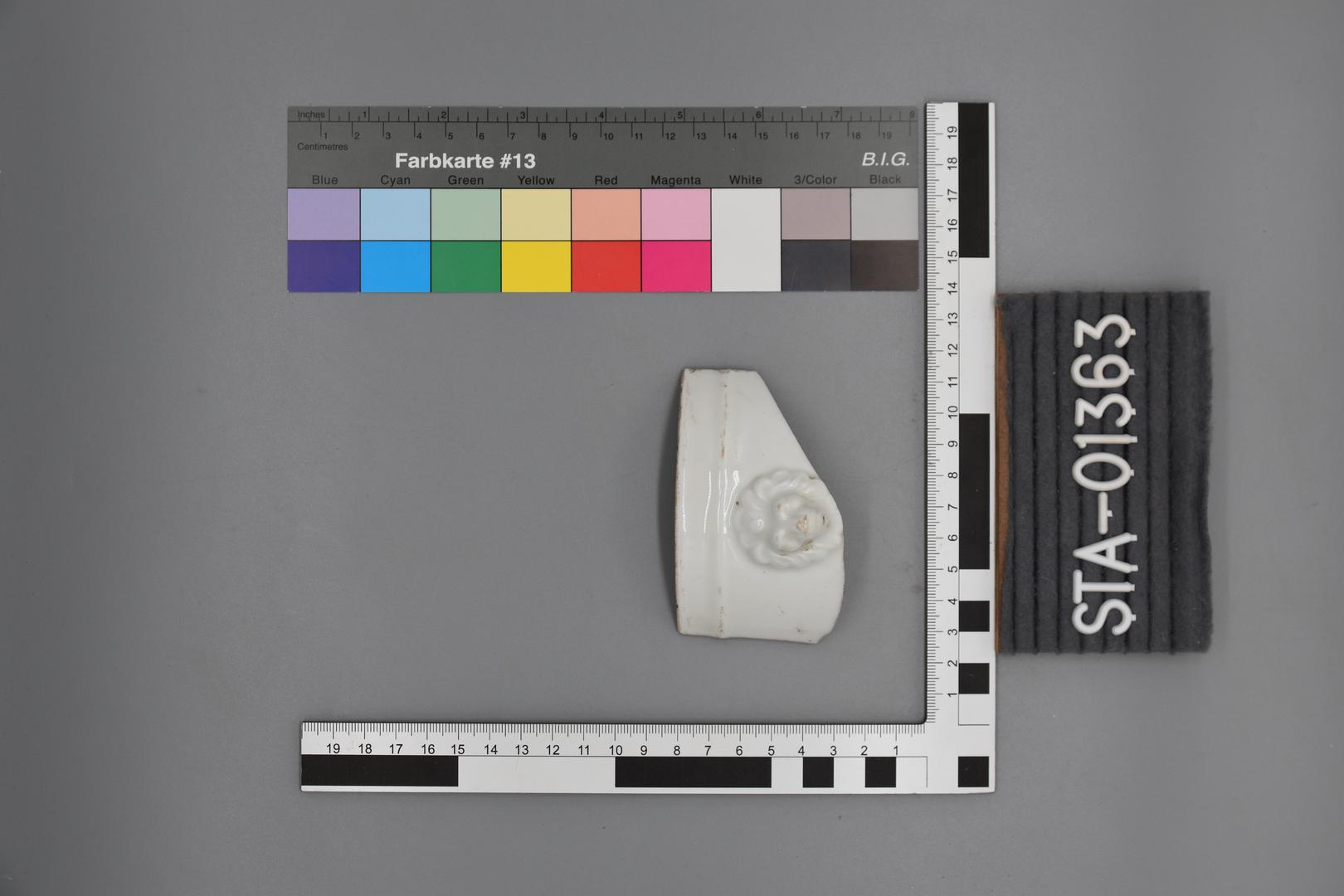 "de": "Die weiße Porzellan Suppenschale hat eine plastische Löwenkopf Darstellung. Der Rand ist leicht abgesetzt vom Gefäßkörper."