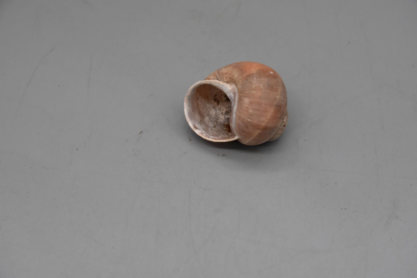 "de": "Ein beige-rot-braunes Schneckenhaus das vollständig erhalten ist."